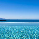 Guests can enjoy a seaside sea view from a terrace at the beachfront Terramare Villas Karpathos Foinikion, 10 minutes' drive from the Agia Sofia.